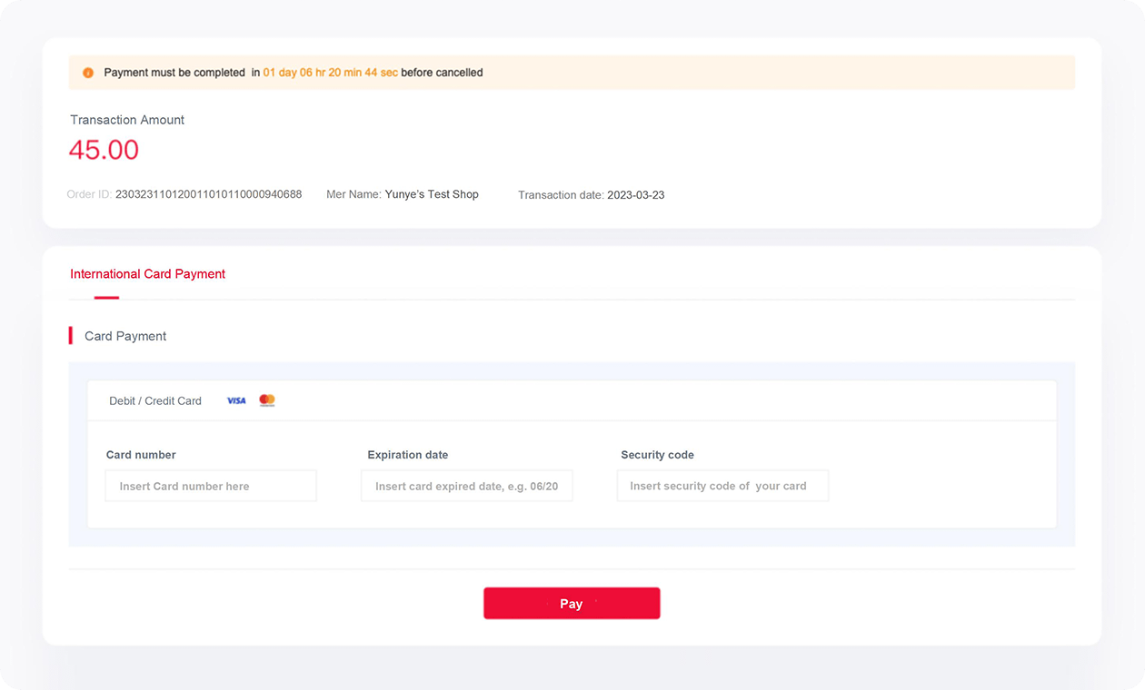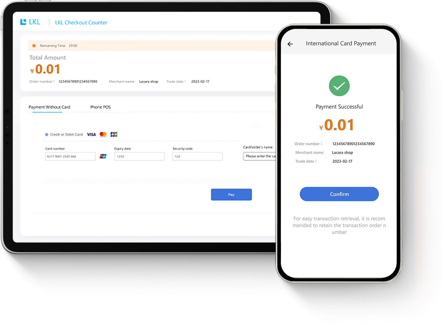 Support major international card types such as Visa, MasterCard, JCB, and UnionPay